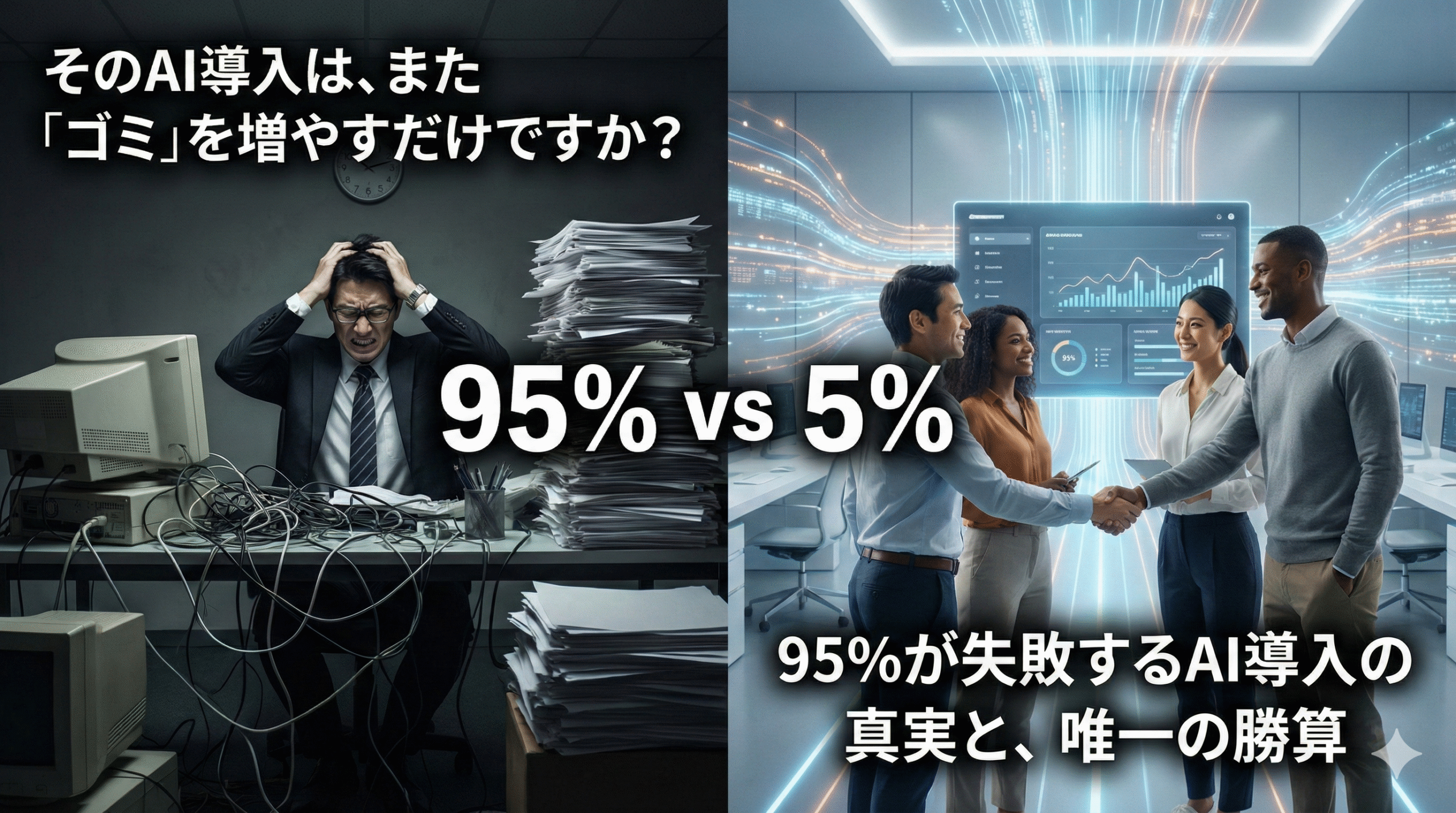95%の企業がAI導入で失敗する中、成功する5%の企業には共通点があります。それは、「技術」ではなく「プロセス」から始めるという姿勢です。